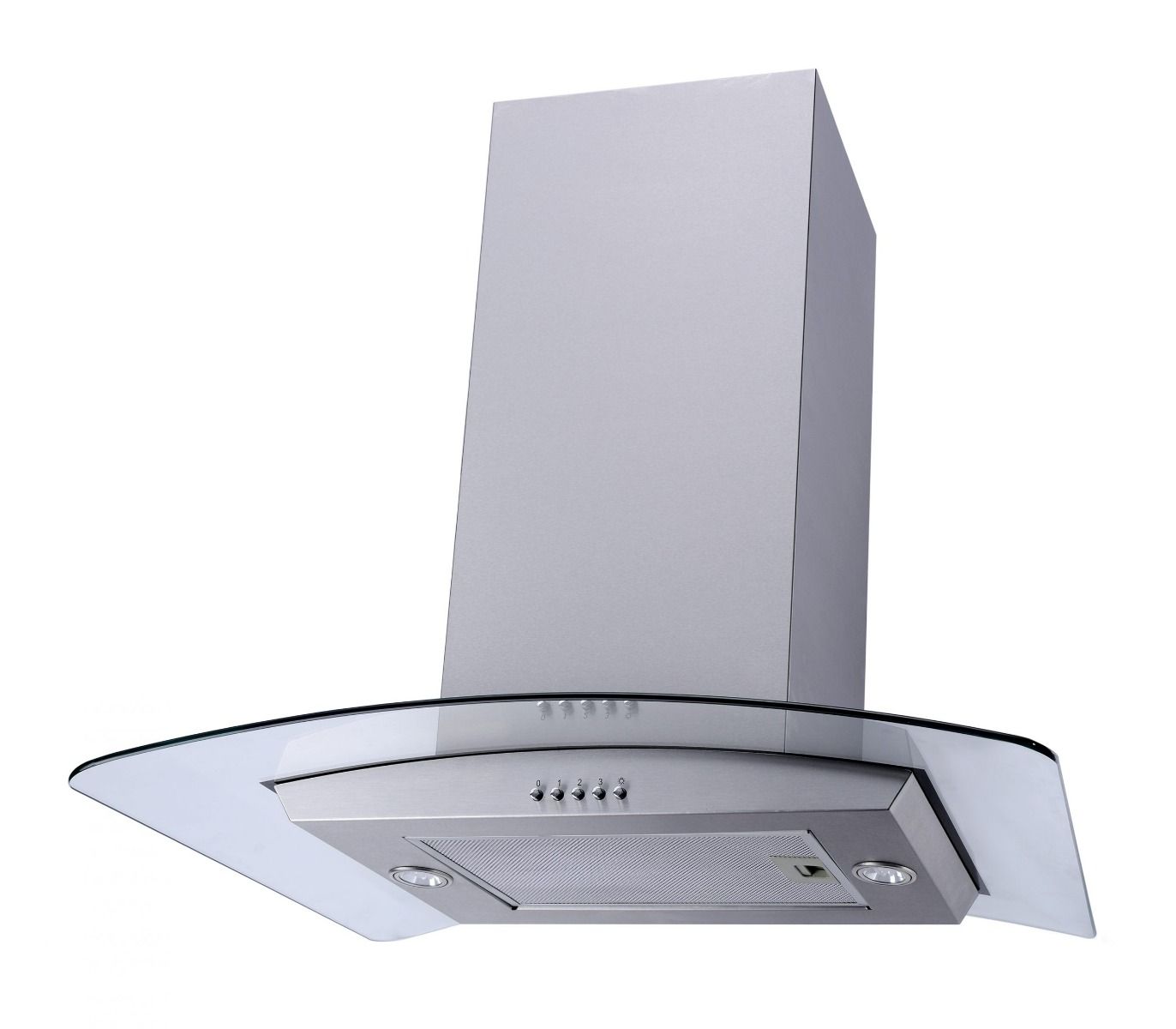 Unbranded Falco 60Cm Curved Glass S/Steel Chimney Extractor with 2m extendable ducting hose. 2 X LED lights. 3 Year Manufacturer Guarantee